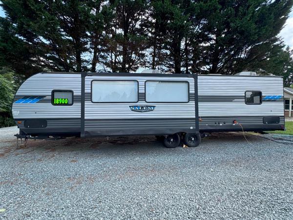 2021 Forest River Salem 37BHSS2Q, 39 Ft. Length, 7,659 lbs. Dry Weight, Electric Slideout, Sliding Glass Door, Electric Awning, Sleeps 8, USB Power Ports, 2 HVAC Units, 50 AMP Hookup, Excellent Condition, Clean Title.
