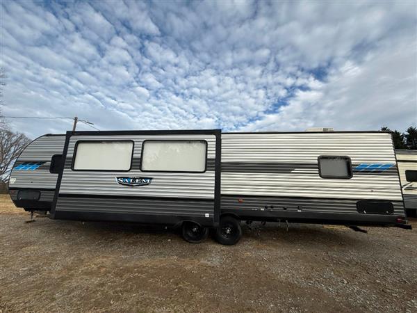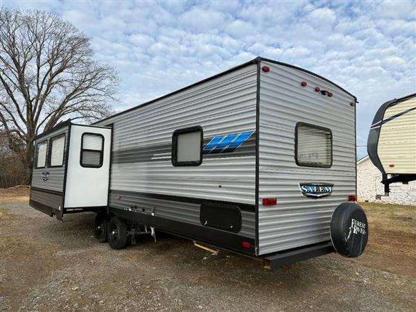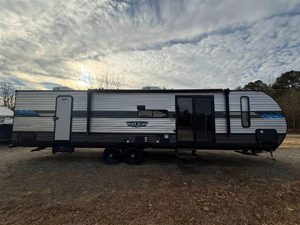 2021 Forest River Salem 37BHSS2Q, 39 Ft. Length, 7,659 lbs. Dry Weight, Electric Slideout, Sliding Glass Door, Electric Awning, Sleeps 8, USB Power Ports, 2 HVAC Units, 50 AMP Hookup, Excellent Condition, Clean Title.